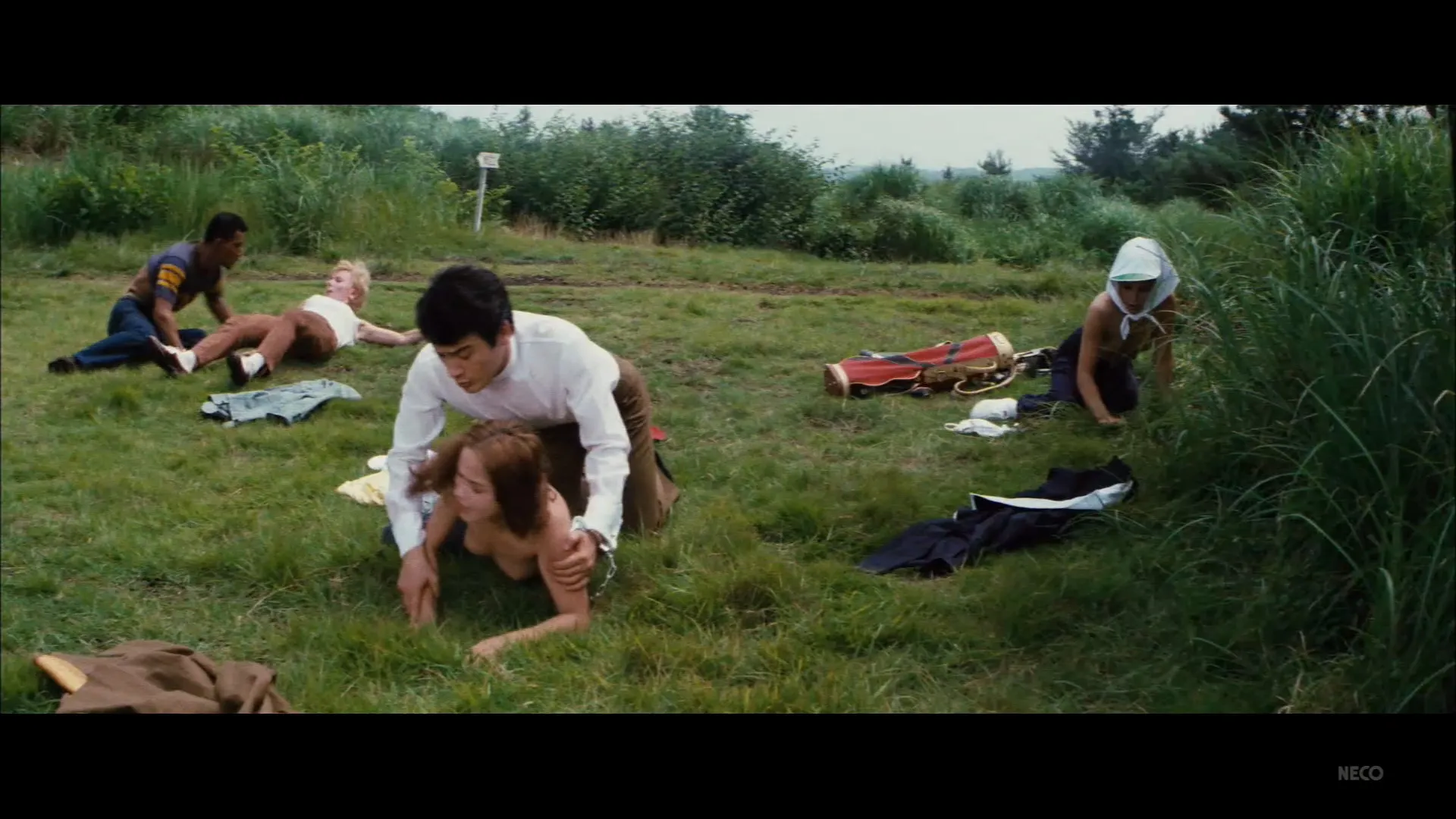 Synopsis of the film: 2 fugitives, an asian and a black, rape full of women